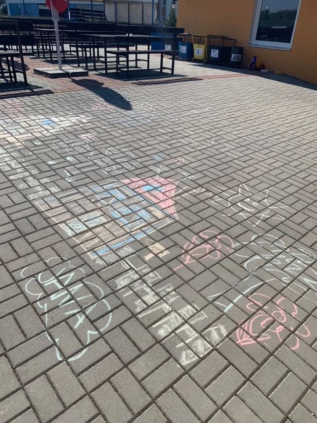 1시간 반을 차 타고 이동해서 도착한 비행장! 하늘이 참 맑았다. 도착하니 하늘에서 방금 스카이 다이빙을 하고 내려오는 낙하산이 보였다. 고개를 돌려보니 내가 곧 타게 될 경비행기도 보이고(비행기를 보니 설레기도 했지만 조금 떨리기도 했다) 내 속도 모르고 이 곳에서 분필로 예쁜 낙서를 하던 귀여운 아이들.