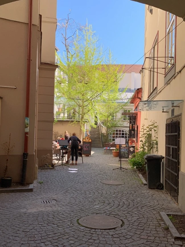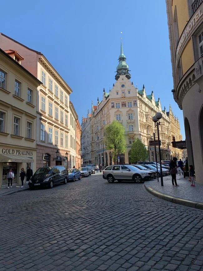 잠시 쪽잠을 자고 일어났더니 체코 프라하에 도착했다. 짐이 있었기에 미리 예약해둔 숙소로 곧바로 향했다. 처음으로 한인민박을 숙소로 선택했는데 다행히 버스 터미널 가까이에 위치해서 캐리어를 끌고 걸어갈 수 있었다. 숙소는 프라하 꿀잠 하우스. 체크인이 2시였어서 너무 이른 아침 8시에 도착한 나는 짐만 맡겨두고 다시 프라하 거리로 걸어 나왔다. 하늘이 참 맑은 프라하. 아침 겸 점심을 먹기 위해 미리 찾아둔 카페를 찾아 걸어가던 중 알이 엄청나게 큰 벚꽃이 골목에 숨어 있어 여행의 시작을 환영받는 기분이었다.