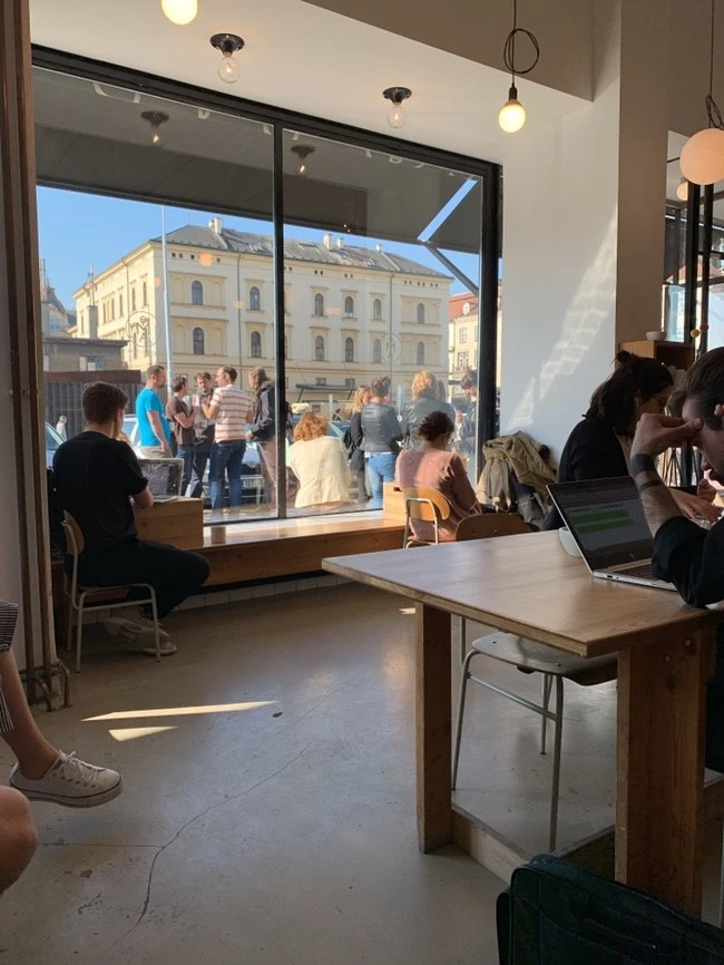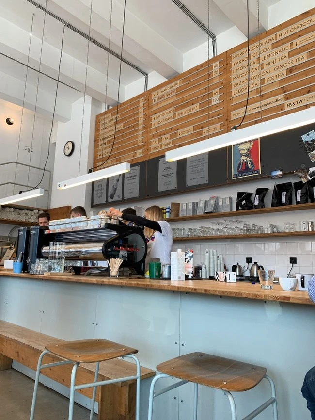 EMA espresso bar. 멀리서도 보이는 저 힙한 바이브(도착도 안 했는데 잘 어울릴 수 있을까 걱정이 된다) 생각지도 못하게 힙한 곳을 와서 당황스러웠지만 바쁜 프라하 사람들과 여유로운 여행객들 사이에서 사람 구경하기에는 딱 좋았다. 자리를 앉고 보니 눈에 들어오는 다양한 삶의 모습, 그리고 따뜻한 햇빛과 여유. 내가 원하던 삶의 템포를 찾은 것 같은 느낌이다.