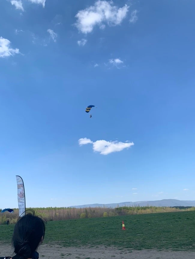 같이 갔던 동행친구가 찍어준 하늘에서 내려오는 나. 고소공포증이 약간 있던 터라 올라가기 전에 걱정을 좀 했는데 진짜 신기하게도 경비행기 타고 올라가서도 안 떨렸다. 다만 내려오다가 압력 때문에 귀가 진짜 찢어지는 줄 알았다. 그래도 스카이다이빙을 한 것은 너무나도 자랑스러웠고 인생을 살면서 절대 후회하지 않을 선택 중 하나일 것 같다.
