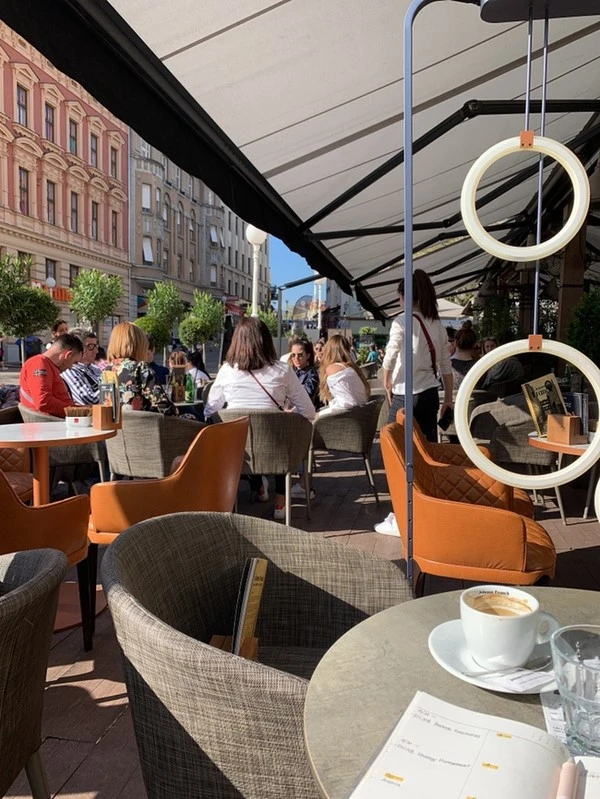 날씨도 좋아서 옐라치치 광장의 한쪽의 테라스 카페에 자리를 잡았다. 햇빛이 눈부실 정도로 강렬했지만 춥지 않고 선선한 바람이 불어 이런 날은 무조건 테라스다!라는 생각이 절로 들었다. 따뜻한 햇살 아래(사실은 뜨겁) 고소한 라떼 한잔은 행복인 것 같다. 각자 여행지에서 돌아온 지 하루, 또는 이틀밖에 안 되었지만 이날 만나서 또 어디로 갈지 머리를 맞대고 의논을 했다. 우리 학생 말고 여행가 같아, 전업 여행가!
