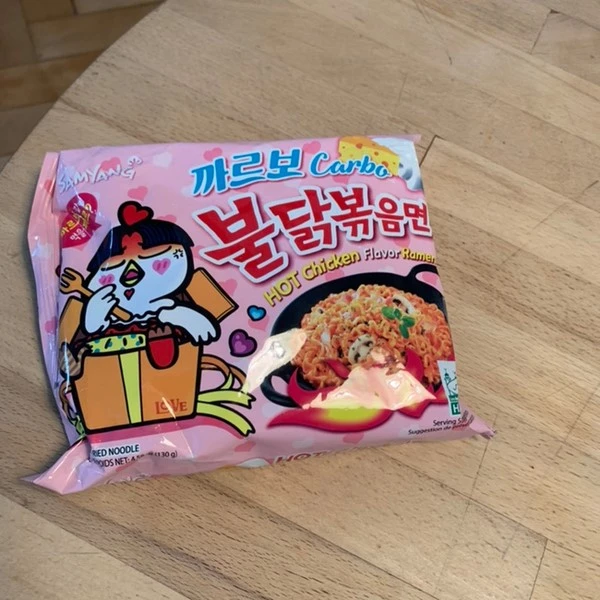 다음날, 오전에 수업을 다녀오는 길에 나는 처음으로 한인 마트에 들렀다. 왜냐하면 전날 후배 지원이가 까르보 불닭을 먹었다는 이야기를 듣고 나서 도저히 참을 수 없었기 때문이다. 아는 맛이 더 무섭다고 수업하는 내내 한인마트에 사 까르보 불닭을 사러가는 상상까지 했다. 집으로 돌아오자마자 옷도 갈아입지 않고 손만 씻은 채 바로 조리에 들어갔고 순식간에 완성했다. 한 입 먹고 나서는 울 뻔했다. 맵찔이가 되어버렸는지 까르보가 들어갔지만 매콤해서 헥헥 거리며 먹는 지경에 이르렀지만 너무나도 맛있었기 때문이다. 불닭은 사랑입니다. 입이 제대로 터졌는지 후식까지 챙겨 먹어야겠다며 룸메가 한국에 갔다가 사온 짱구까지 먹어주었다. 이렇게 알찬 하루가 또 있을까?