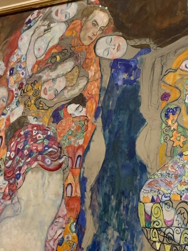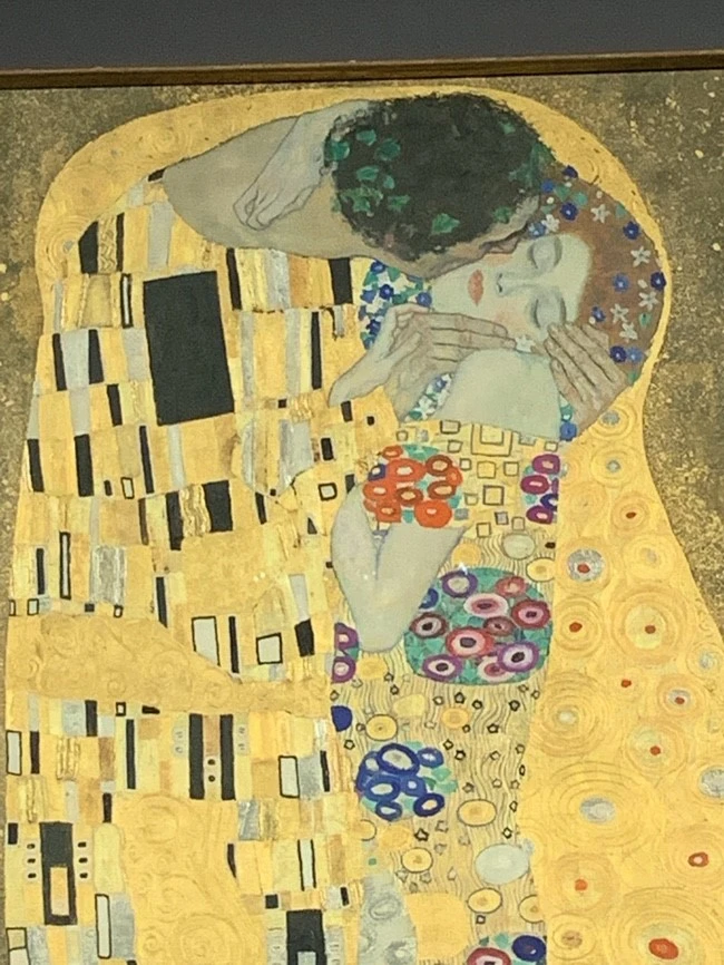 수많은 작품들을 거쳐 드디어 클림트의 THE KISS를 보았다. 사실 모네와 비슷한 화풍을 가진 그림을 평소에 봐 왔어서 별로 기대를 안 했다. LG 광고나 검색만 해봐도 볼 수 있는 유명한 작품이라 더더욱 그랬던 것 같다. 하지만 막상 직접 가서 실제 작품을 보니 느낌이 달랐다. 금칠이 되어있어 그 어느 그림보다 화려한 듯하지만 그림이 담고 있는 사랑 때문인지 꽤 따뜻하게 느껴지기도 했다. 클림트 그림 최고, 감동이다.