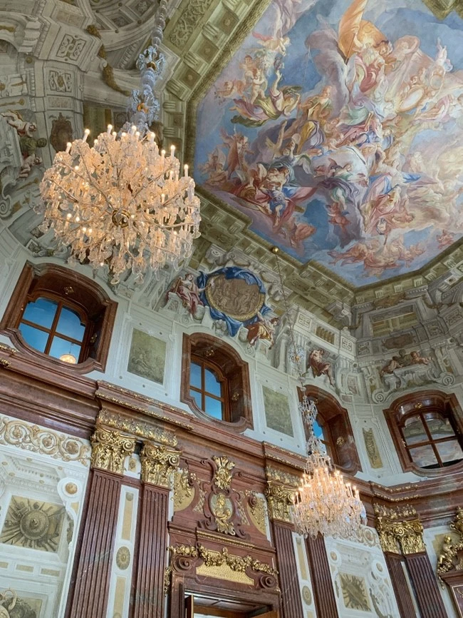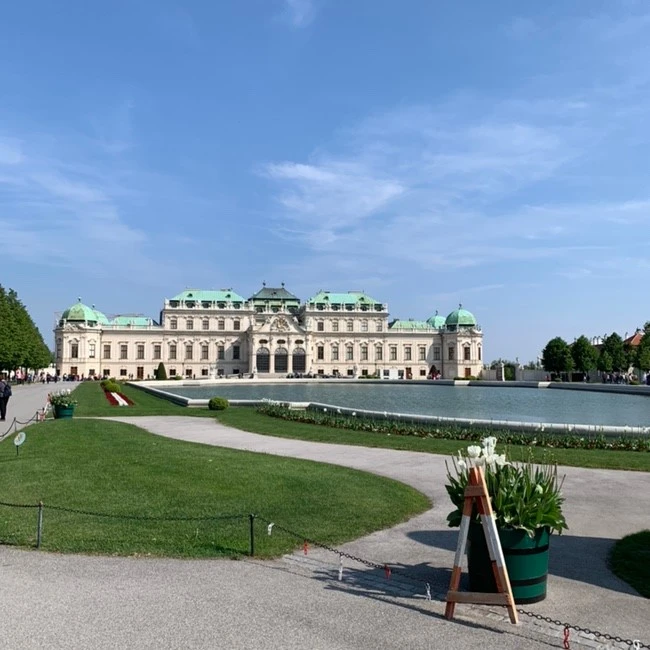 벨베데레 궁전. 오스트리아다운 깔끔한 외관에 시선이 집중되었다. 정돈된 정원과 연못이 어우러져 진짜 유럽에 온 것 같은 느낌이 들었다.(진짜 유럽에 있으면서도 궁전을 보지 않으면 가끔 유럽에 있다는 사실을 까먹게 되는 것 같다.) 날씨가 좋아서인지 주중임에도 불구하고 관광객은 넘쳐났다. 한참을 줄 서서 입장권을 산 우리는 궁전에 들어가기도 전에 진이 빠진 느낌이다. 설레는 마음으로 들어간 궁전은 삐까번쩍했다.