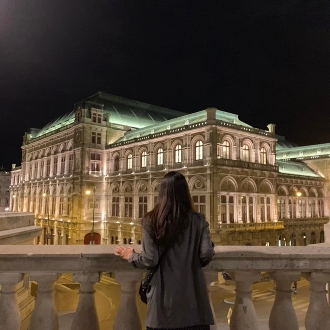 처음 만난 사람들 치고는 꽤 빠르게 친해졌다. 그중 한 사람은 폴란드에 위치한 한국 기업에서 일하고 있는 주재원이었는데 휴가를 보내기 위해 6시간 동안 차를 몰아 오스트리아로 왔다고 했다. 소주 러버라 여행 중간에 만나게 될 한국사람들과 함께 마실 소주를 차 트렁크에 몇 병 실어왔다고 해 그는 다시 숙소로 돌아가는 열정까지 보였다. 그가 우버를 타고 소주를 가지고 돌아오기만을 기다리며 근처 오페라 하우스 야경 맛집이 있다고 해서 올라갔다. 막상 올라가니 한국인들에게 꽤 알려진 야경 맛집이었나 보다. 한국인 투성이라서 사진을 찍는데 조금 눈치가 보였지만 그래도 기분이 좋으니(왜냐면 곧 소주를 마시거든요) 사진을 빠르게 후다닥 찍었다.