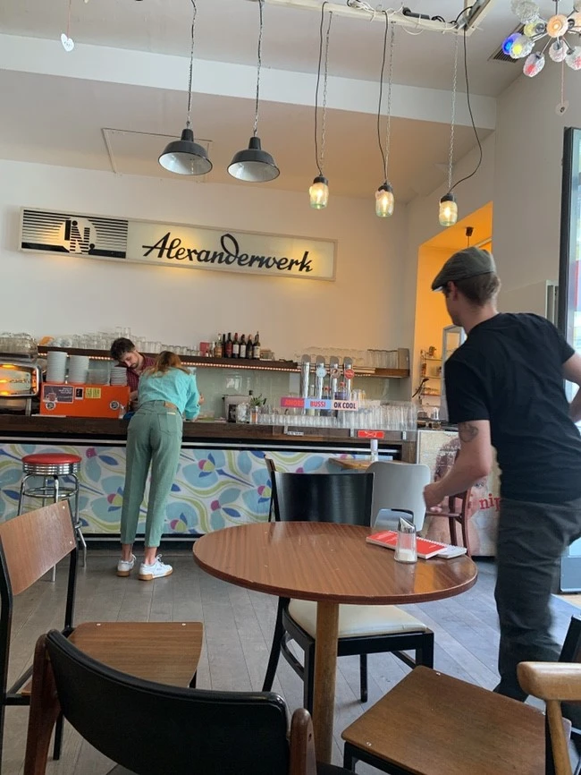 Phil Cafe. 여행 중 미술관, 관광지 등을 찾아가는 것 또한 의미가 있지만 나에게는 카페가 중요한 의미가 있다. 하루에 최소 한 군데는 현지의 카페를 가는 걸 혼자만의 철칙으로 삼아 왔기에 열심히 검색해 찾아낸 곳으로 향했다. 도착하니 야외 테이블은 이미 만석이라 실내로 들어가 자리를 잡았다. 카페로 한참을 걸어와 조금 더웠는데 메뉴판을 보니 아이스 아메리카노를 판매하고 있어 곧장 주문했다. 얼음이 동동 띄워져 있던 아이스 아메리카노가 곧바로 나왔다. 마시기 전 이전의 카페들처럼 밍밍할까 봐 걱정을 했는데 하나도 연하지 않고 맛있었다. 한국에서는 산미 있는 커피보다는 고소한 커피가 많아 조금 아쉬웠는데 유럽은 이 부분에 있어 최고인 것 같다. 바로 옆에는 작은 책방도 같이 운영 중이 었는데 어른, 아이 할 것 없이 모두들 구경하는 모습이 너무 예뻤다. 직원들 바이브도 활기가 넘쳐서 즐거웠는데, 그중 한 언니의 패션에 취향을 저격해 혼자서 애정 어린 눈으로 바라보며 그녀의 패션센스에 박수를 보냈다.