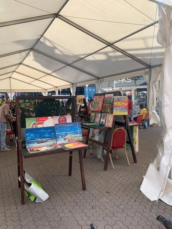 마음먹은 대로 일이 잘 풀리지는 않았지만 집으로 돌아오는 길에 또 새로운 광경을 만날 수 있었다. 분명 갈 때만 하더라도 조용했던 옐라치치 광장인데 몇 시간 안 지난 지금은 사람들로 북적북적하다. 한편에서는 한 행사장 부스가 열렸는데 다양한 화가들의 그림을 구경하는 재미가 있었다. 자그레브에 살면서 안 좋은 점도 분명 있지만 그보다 좋은 점이 더 많은 것 같아 나는 나름 만족한다. 그중 수도라서 갖는 이점도 있는데 그중 광장에서 행사를 꽤나 자주, 많이 하는 것을 꼽을 수 있다. 문제는 매번 기습적으로 해서 뭐하는지도 모른다는 거지만...