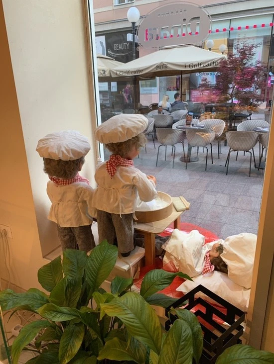 힘 쪼옥 빼고 집에 들어가면 또 요리하기 싫을게 뻔하다. 이렇게나 나의 미래를 잘 아는 덕분에 집에 곧장 가지 않고 근처 빵집에 들렀다. 딱 한번 가본 빵집에서 뭘 살까 고민하다가 빵집에서 파는 피자는 다르겠지라는 생각에 맛있어 보이는 걸로다가 포장해 왔다. ps. 저 인형들은 지나갈 때마다 보는데 볼 때마다 무섭,,, 더 맛있을 줄 알았는데 맛없다. 너무나도 짜다 애미야?