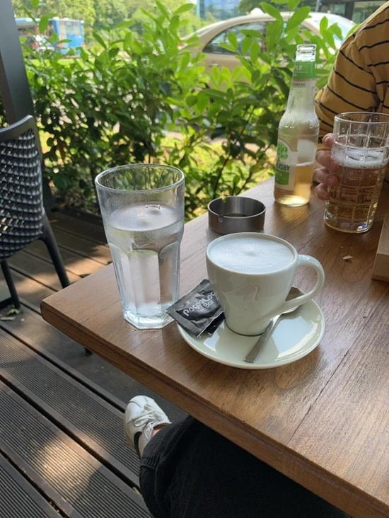 드, 디, 어!!!! 이번 학기의 마지막 시험까지 다 쳤다. 시험은 10시에 끝났지만 12시에 성적 사인을 받아야 해서 학교 근처 빵집에서 크로와상과 요거트를 먹으며 존버 하기로 했다. 요거트를 샀지만 가게에서 먹을 줄은 몰랐겠지? 스푼도 없이 요거트를 먹는 묘기를 보였다. 하지만 시간은 야속하게도 더디게 갔다. 커피라도 마셔야 버틸 수 있을 것 같았고 바로 옆 카페로 가 야외 테라스에서 2시간을 버텼다.