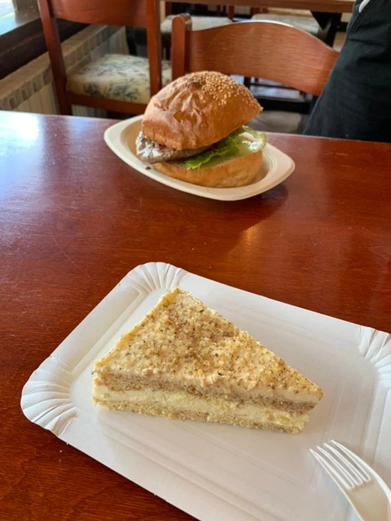 출발 전 소시지빵을 먹고 왔지만 불꽃 수다와 더불어 땡볕 아래에서 1시간이나 서서 기다렸더니 소화는 물론이고 당까지 딸려 힘이 쪼옥 빠져버렸다. 국립공원이라 그런지 입구 근처에 먹을만한 것도 없기도 했고 입맛도 별로 없어서 나는 honey cake, 지원이는 plitvice burger를 주문했다. 그런데 웬걸? 관광객도 많고 두 눈 멀쩡하게 뜨고 있는 한국인 두 명도 마주 보고 있는 상황에서 종업원이 덤터기를 씌우려다가 딱 걸렸다. 내가 주문하지 않은 메뉴까지 더해 결제를 하라는 것이다. 이런 건 또 참을 수 없지. 목소리는 높이지 않더라도 내가 할 말을 천천히 말하니 조금 쫄았는지 오히려 그 종업원의 목소리가 커지면서 너희가 그렇게 말하지 않았느냐, 내가 잘못 들을 리 없다는 둥 말도 안 되는 소리를 하기 시작했다. 결국에는 매니저가 나와 원래대로 결제를 해 주었고 속으로 열불을 낼까 고민했던 나와 지원이도 다시 침착하게 자리에 앉을 수 있었다. 그래도 맛은 있었다.