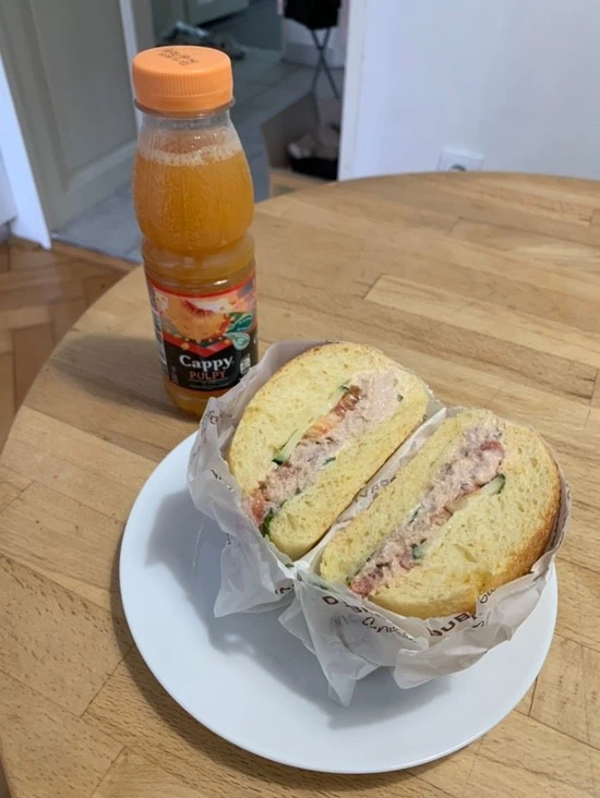 땀을 쫙 빼고 도착한 집. 나름 역사적인 날이기 때문에 가장 좋아하는 메뉴를 점심으로 먹고 싶었다. 오늘 길에 우연히 발견한 빵집에 들러 오랜만에 참치 샌드위치를 포장해 와 맛있게 먹었다. 역시 행복은 멀리 있지 않았다. 먹는 도중 룸메이트가 학교에 갔다가 귀가했다. 그런데 갑자기 꽃 한 송이와 편지 한 개를 건네주었다. 사실 헤어지기 전에 편지를 주고 싶다고 노래를 불렀는데 농담인 줄만 알았다. 그런데 진짜로 주다니? 카네이션 한 송이와 편지를 받으니 괜히 정말 헤어져야 할 때가 다가오는 느낌이라 기분이 이상했다. 고마워 선아야.