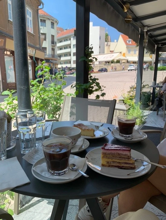 다음날, 오늘은 특별한 날이다. 한국에서부터 룸메이트 어머니께서 오시는 날이기 때문이다. 아침 일찍부터 집안을 청소하기도 하고 집이 좁아 어머니께서 지내실 숙소를 따로 정했어야 하는데 그곳의 위치와 상태까지 미리 보고 와야 했기 때문이다. 중요한 일처리를 어느 정도 끝내 놓고 나서 우리들의 최애 카페로 향했다. Amelie. 평소와 달리 이제는 올 수없다는 생각에 1인 1 케이크를 주문했고 룸메이트는 아이스크림까지 추가로 주문했다. 유럽에 살다 보니 이제 아이스 아메리카노는 직접 제조해야 하는 수준이라 이번에도 역시나 에스프레소와 얼음을 주문했다. 캬 맛있다.