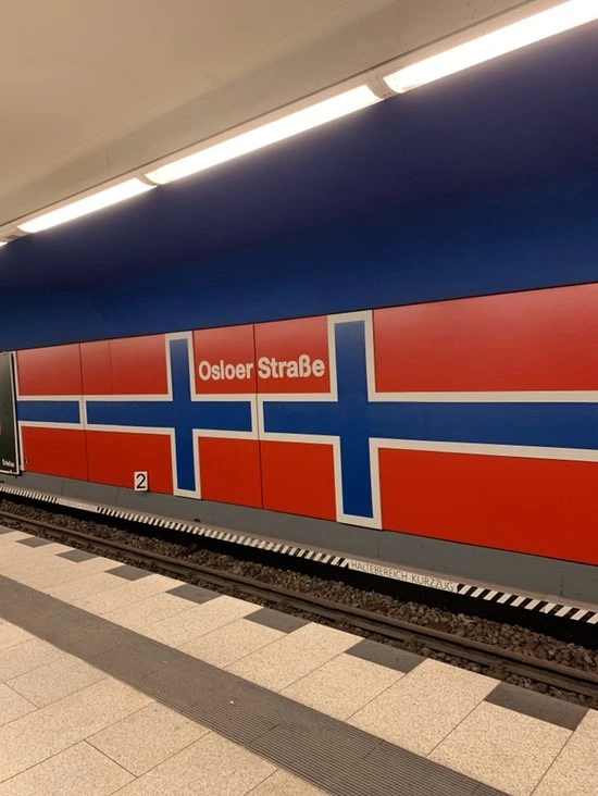 숙소 바로 앞에는 넘어지면 코 닿을 정도로 가까이에 지하철 역이 있었는데 그 이름하야 Berliner Strabe. 괜히 베를린에 도착한 티가 팍팍 나는 역 이름이라 느낌이 좋았다. 독일 지하철은 처음이었는데 여기에서도 독일만의 감성, 철학이 느껴졌다. 불필요한 데에 돈을 허투루 쓰지 않겠다는 절약정신? 플랫폼으로 내려온 지 얼마 지나지 않아 노랑노랑 한 메트로가 도착했다. 에어컨이라고는 생각도 못했던 걸까, 꽤 높은 온도였음에도 불구하고 에어컨이나 선풍기도 없이 창문을 열고 달리는 이곳 지하철은 귀가 찢어질 듯한 소리에도 익숙한 듯 칙칙폭폭 움직였다. 곧이어 나는 북유럽이 떠오르는 쨍한 표지판이 걸린 Osloer Strabe에 도착했다.