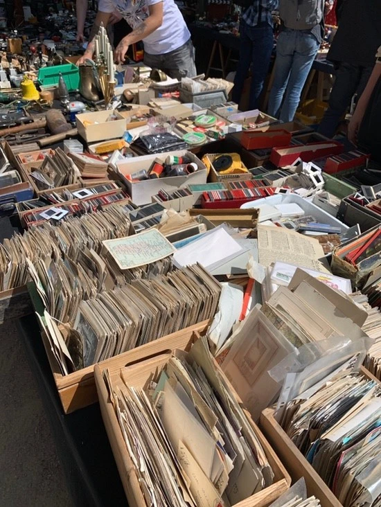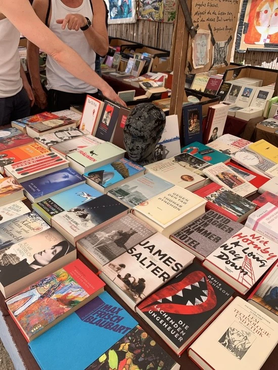 왜 이곳까지 왔냐면? 매주 일요일마다 플리마켓이 선다는 소식을 들었는데 안 와볼 수 있겠는가. 마침 베를린에 도착한 날이 일요일이기도 해서 동행들과 함께 마우어 플리마켓에 도착했다. Fleamarket Mauerpark. 입구부터 초록 초록한 식물들을 팔고 있어 시선을 사로잡았는데 언뜻 봐도 꽤 큰 규모의 플리마켓 같았다. 플리마켓 안쪽으로 발걸음을 옮기자 곧이어 순간적으로 프랑스 방브 시장에 온 듯한 느낌이 드는 장면을 마주할 수 있었다. 수많은 중고 엽서와 빈티지 필름과 같은 빈티지 천국, 딱 내 스타일이다(엉엉) 세컨드 핸드 옷들도 많았지만 이곳에서는 별로 안 끌려서 눈으로 몇 개 보기만 하고 곧장 패스했다. 플리마켓이라 그런지 오래된 상품들부터 꽤 최근에 출간된 책도 매대에 놓여 있었다. 한국 책도 심심치 않게 눈에 띄어서 괜히 반가웠다.