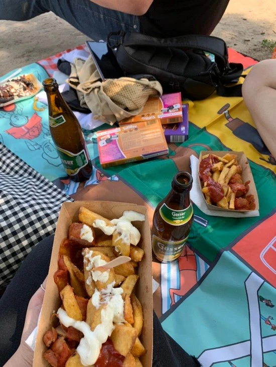 독일에 왔으면 꼭 먹어줘야 한다는 커리 부어스트. 독일에 도착하자마자 첫 음식(조식은 제외)으로 소시지를 먹을 수 있어 행복했다. 그런데 동행으로 만난 언니 한 명이 스타벅스의 한 매장에서 부점장이었다. 정말 세상 오래 살고 봐야 할 것 같다. 수많은 직장인 중 스타벅스 부점장을 독일 베를린에서 만나다니? 심지어 이 언니는 내 동행의 동행이라 마음만 먹었으면(?) 만나지 못했을 수도 있었다. 참 신기한 인연이다. 하여튼 언니의 빅픽쳐로 우연히 들른 마우어 파크에 피크닉 매트를 갖고 와 무릉도원을 맛볼 수 있었다. 정말 베를린까지 와서 피크닉 할 생각이 1도 없었는데 나는 정말 복 받은 사람이다 정말.