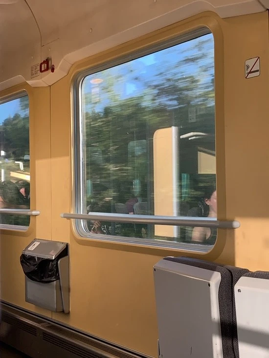 정말 웃음밖에 안 나왔다. 설국열차 꼬리칸 같은 이곳, 자유석이라는 말에 기대했는데 정말 말 그대로 개판 5분 전이었다. 자리가 정말 하나도 없었다. 지나다니는 통로는 왜 이렇게 좁은지 빈자리를 찾기 위해 캐리어 두 개를 들고 계속해서 걸어갔는데 정말 미쳐버리는 줄 알았다. 결국 자리를 찾지 못한 나는 약 30분 동안 서서 갈 수밖에 없었다. 다행히 한 할머니께서 짐을 의자 옆에 두어도 된다고 하셔서 간이의자에 잠시나마 앉을 수 있었고 그곳에서 바라본 창 밖의 풍경은 꽤나 아름다웠다. 이제야 이 풍경이 눈에 들어오다니. 하지만 에어컨도 나오지 않는 이 곳에서 5시간 동안 가는 것은 정말 지옥이었다. 지친다 지쳐. 얼른 프랑크푸르트에 도착할 수 있게 해 주세요.