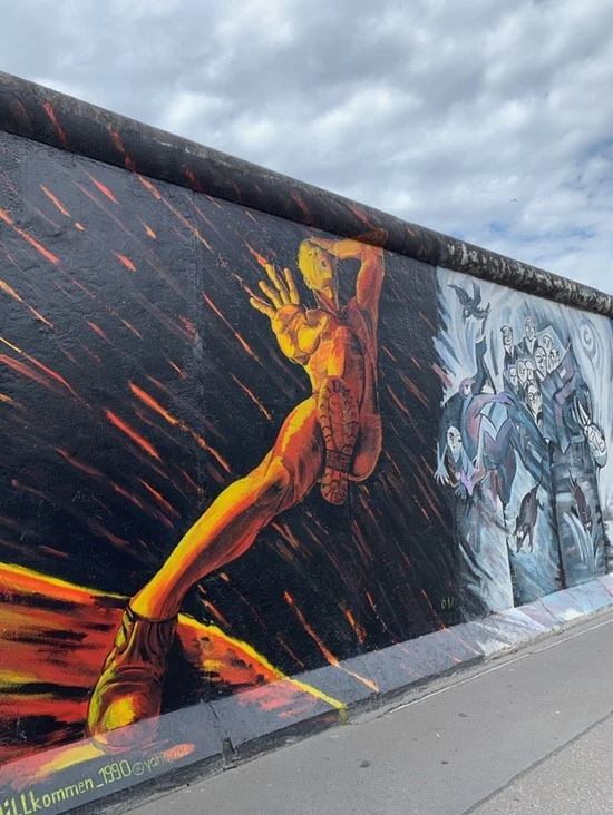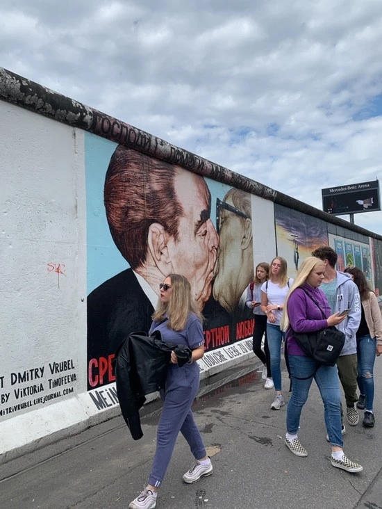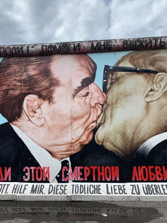 아침 10시 정도였는데도 불구하고 사람이 엄청나게 많았다. 강을 따라서 쭉 늘어선 이곳에는 수많은 벽화가 있었다. 이스트 사이드 갤러리는 베를린 장벽 일부에 조성된 미술 갤러리로 슈프레 강이 보이는 위치에 1.3km 길이의 장벽에 조성되었다. 이 갤러리는 세계에서 가장 길고 오래된 야외 공개 갤러리로 알려져 있는데 이곳에 있는 그림들은 변화된 시간을 기록하고 행복감과 더 나은 희망, 전 세계의 모든 사람들을 위한 더 자유로운 미래를 표현했다고 한다(위키백과) 한참을 걸어갔는데 아니 이것은? 사진으로나마 몇 번 봤던 작품. 생각보다 규모는 작았지만 벽화의 상태가 좋았다.(검색을 해보니 원래는 심각하게 훼손되어 있다가 2009년 복원 작업을 했고 지금의 상태가 되었다고 한다) 여느 관광객들처럼 나도 셀카부터 작품만을 담은 사진까지 여러 장 찍었다.