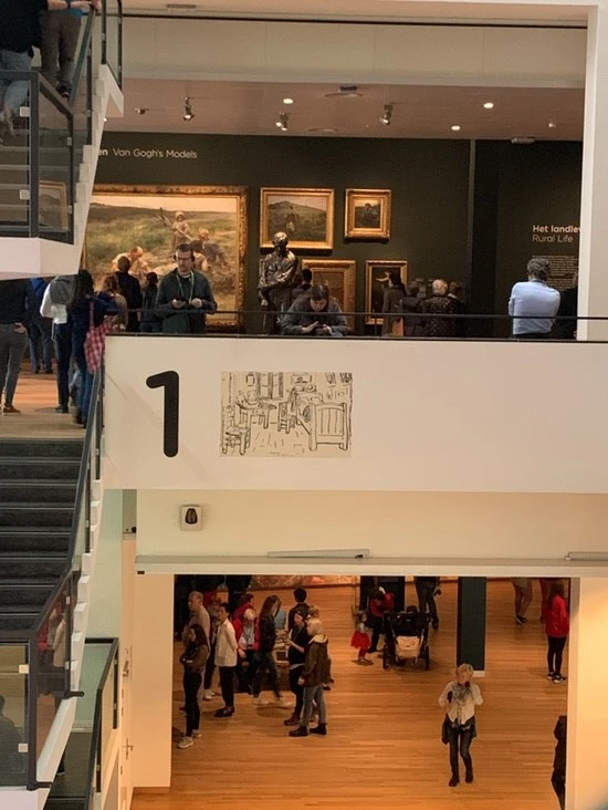 내가 얼마나 오고 싶었다. 네덜란드 암스테르담의 수많은 명소가 있었지만 그중 이곳에 너무나도 와보고 싶었다. 한국에 있을 때 반 고흐가 그림을 사랑하는 엄청난 팬은 아니었지만 미술에 대해 무지한 나도 그의 그림을 보고 생명력을 느낄 정도로 매혹적인 작가라는 것은 알 수 있었다. 네덜란드를 대표하는 작가인 반 고흐, 그의 인생이 담긴 작품을 두 눈으로 볼 수 있는 것뿐만 아니라 그가 살아온 인생에 대해 깊이 이해할 수 있는 시간을 가질 생각에 전시를 아직 보지 않았음에도 그의 대표적인 작품 해바라기만 보고도 흥분되었다. 점심시간에 가까운 시간이었음에도 불구하고 전시장에는 사람이 우글우글했다.