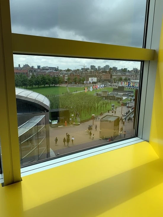 반 고흐 미술관 창밖으로 바라본 하늘은 구름이 몽글몽글 있어서 꽤 어두웠지만 내부는 노랑노랑 해서 그런지 꽤나 밝았다. 창문틀에서도 반 고흐를 상징할 수 있는 쨍한 노란색이 있다니.