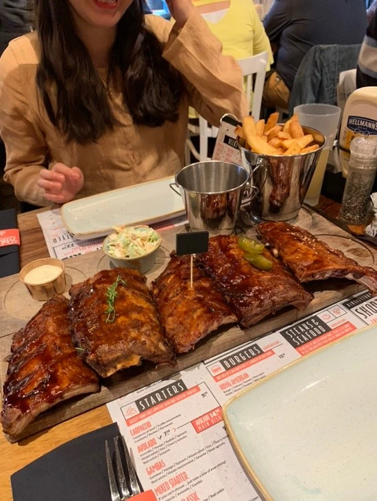 오늘 처음 만난 진주 언니는 프랑스에서 교환학생으로 공부를 하다가 나처럼 한국으로 돌아가기 전 유럽여행을 하고 있었다. 그런데 이게 무슨 말인가? 유럽에 산지 나보다 오래된 사람인데도 불구하고 라들러를 한 번도 들어본 적이 없다고 했다. 정말 근래 들은 이야기 중 가장 충격적이었다. 술을 잘 못 마셔서 그렇다고 이해를 해보며 언니에게 라들러를 소개해주었다. 다행히 무알콜 라들러를 팔고 있어 음료수 겸 주문을 했는데 다행히 언니의 입맛에도 맞아 맛있게 마셨다. (솔직히 이거는 내가 언니다 그렇지?) 립으로 유명한 이곳에서 우리는 결정 장애답게 다양한 맛을 볼 수 있는 립 컬렉션을 주문했다. 우리 테이블 옆에는 한쌍의 커플이 먼저 와 음식을 먹고 있었는데 우리가 주문한 메뉴가 나오는 걸 보고 매우 부러워했다. "와우 이걸 시킬 껄 그랬어" 이러면서 말이다. 약간의 너스레를 떨며 아쉽다, 나중에 한번 주문해봐 라고 말한 뒤 우리는 배가 터지게 먹었다. 한 두 개 정도 줄걸 그랬나?