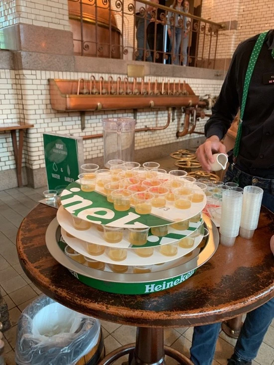두근거리는 마음으로 도착한 곳! 하이네켄 맥주 탄생의 시작점을 잘 설명해주는 탄생과정을 살펴볼 수 있었다. 알코올이 전혀 들어가지 않은 청소년 단계도 있었는데 직접 시음도 해볼 수 있었다. 조심스럽게 한입 마셔보니 단내가 엄청나던 것과는 달리 달지 않고 곡식 맛이 났다. 그리고 물이랑 보리만 들어가서인지 약간 달지 않은 식혜 같은 느낌이었다. 그래서 언제 완성된 맥주를 맛볼 수 있는 거죠?? 저 지금 목마르단 말이에요.