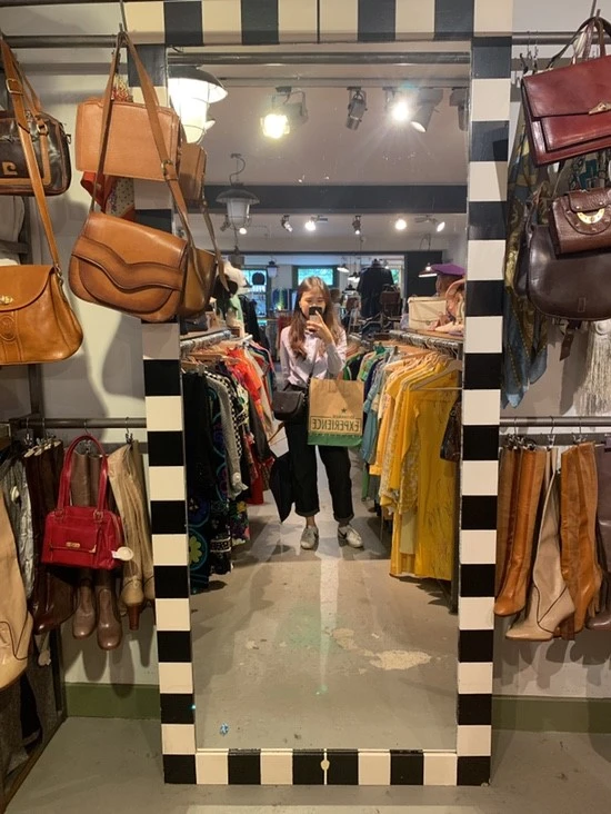 나는 길을 지나다가 빈티지 샵을 봤는데 안 들어가면 죽는 줄 아는 사람인가 보다. 굳이 뭐가 필요하지 않고 돈이 없어도 꼭 한 번은 들어가서 훑어보고 하나씩 입어봐야 마음의 평화가 찾아온다. 이번에도 별 기대는 하지 않고 뭔가 의무적으로 들어가 본 빈티지 샵이었는데 생각보다 예쁜 아이템이 너무나도 많아서 구경하고 한 번씩 입어보는 재미가 있었다. 근데 왜 이렇게 비싸? 도시 물가 따라간다고 그런 건지 베를린이나 슬로베니아에서 봤던 것들과는 천지차이였다. 예뻐서 입어본 것들 중 조금은 기장이 짧은 숏 자켓이 있었는데 오늘 내가 입고 간 바지 때문인지(발목 위로 올라오는 9부 바지) 왠지 모르게 손뼉 치는 원숭이 같은 느낌이 들었다. 거울로 쳐다보게 되는 내 모습이 너무 웃겨서 이 옷은 아쉽지만 패스, 가격도 적당한데 예쁘고 새것 같은 빈티지는 없는 건가? 정말 운 좋게 한번 그런 블레이저를 두 개나 발견했던 전적이 있어서 그런지 쉽게 잊기가 힘들다. 어디 있니 도대체?