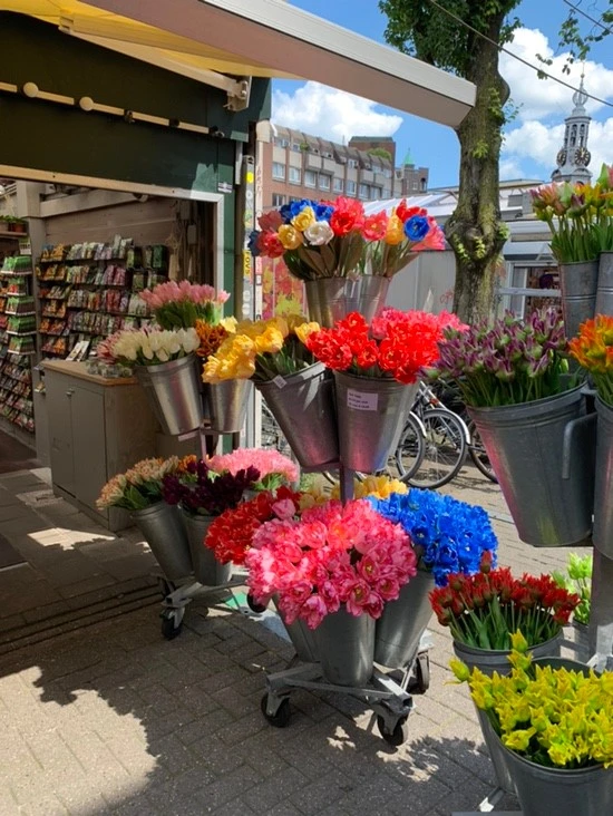한참 동안 구경을 하고 나온 우리는 근처에 위치한 시장에 들렀다. 그동안 암스테르담에 관광객을 많이 못 봤다고 생각했는데 이곳에 와보니 관광객들이 다 있었네 하는 생각이 들 정로 사람이 많았다. 물론 현지인들도 많이 있는 유명한 시장이었지만 유명해서 그런지 관광객이 훨씬 더 많았다. 튤립 국으로 유명한 네덜란드라 그런지 생화도 많이 팔았지만 모종도 굉장히 많이 팔았다. 색깔부터 종류까지 선택할 수 있는 시장의 분위기에 나 또한 신이 났다. 꽃을 좋아해 매년 봄마다 엄마와 함께 꽃 도매시장에 가곤 했는데 여기는 봄이 아니더라도 항상 이런 꽃 시장을 길에서 볼 수 있다는 점에서 암스테르담 시민들이 조금은 부러웠다. 근데 신기한 것은 튤립 모종 씨가 양파처럼 굉장히 컸다는 것! 한국에 기념 삼아 하나쯤 사갈까 하는 생각도 하다가도 분명 죽음의 손이 되어 꽃도 못 필 것 같아 꾹 참았다. 한참을 구경한 우리는 치즈 매장 한 곳에 들어갔는데 아무런 물욕도 오르지 않았던 나와 달리 언니는 이곳에서 148789번 유혹을 떨쳐내고 나왔다. 계속해서 대뇌이는 주문, 나는 이것들이 필요하지 않다. 언니와 나는 각자의 물욕을 다스리기 바빴다.
