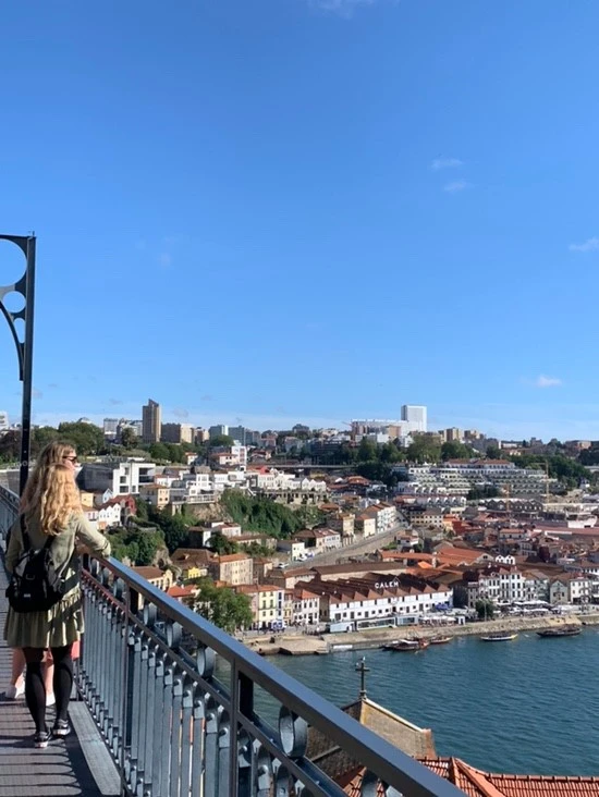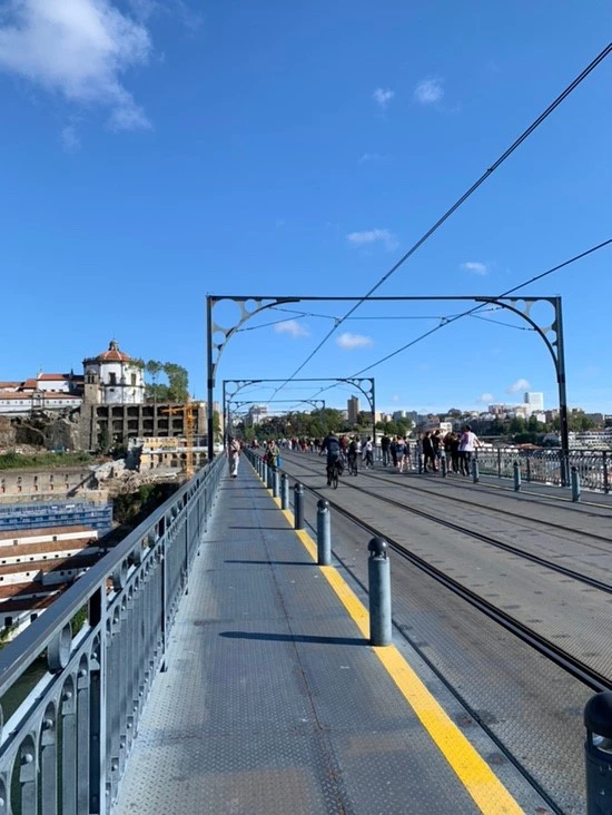 포르투의 유일한 지하철이 이곳 동 루이스 다리도 지나다니는데 꽤 저속으로 움직이는 편이긴 하지만 그래도 다리를 찾는 사람들이 오른쪽과 왼쪽을 오고 가는 걸 고려하면 꽤나 위험해 보이는 상태였다. 나도 걸어가다가 마주오는 사람을 피하려고 전철이 다니는 쪽으로 피했다가 뒤쪽에서 지하철이 온다는 알람을 듣고 깜짝 놀라며 바깥쪽으로 몸을 피했다. 조금 더 관광객이 많이 몰리는 여름이 되면 안전을 위해서라도 어느 정도의 체계가 필요해 보였다. 그래도 이곳까지 왔는데 다리의 오른쪽만 볼 수는 없다는 생각에 다른 관광객들처럼 나 또한 조심하며 지그재그로 왔다 갔다 하며 구경했다. 안전제일!