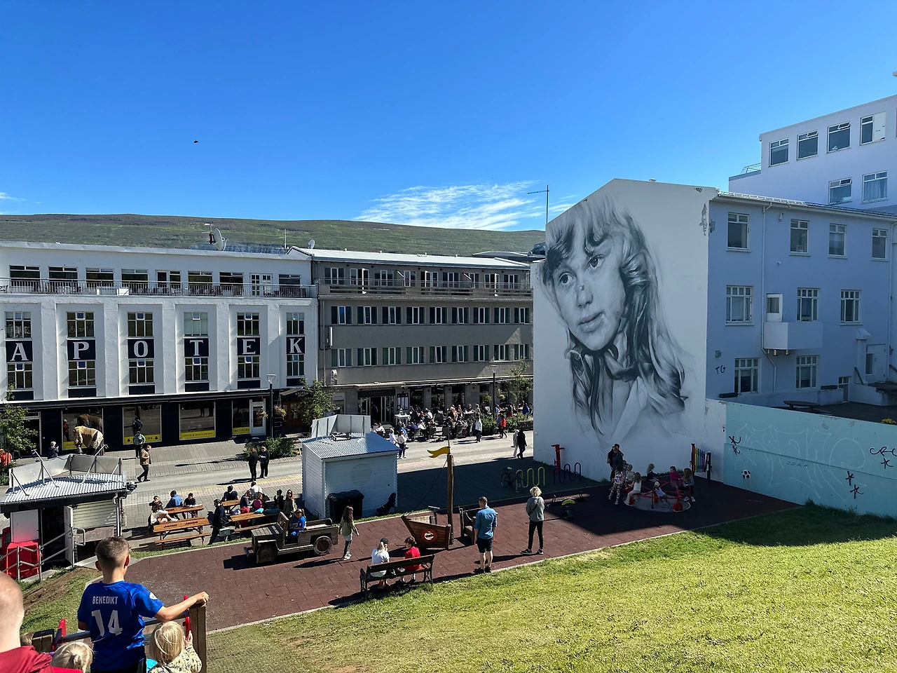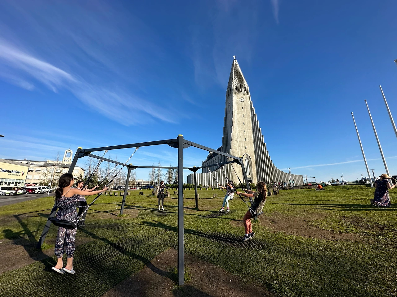 레이캬비크의 하들(할)그림스키르캬 교회 앞에는 그네가 있다.