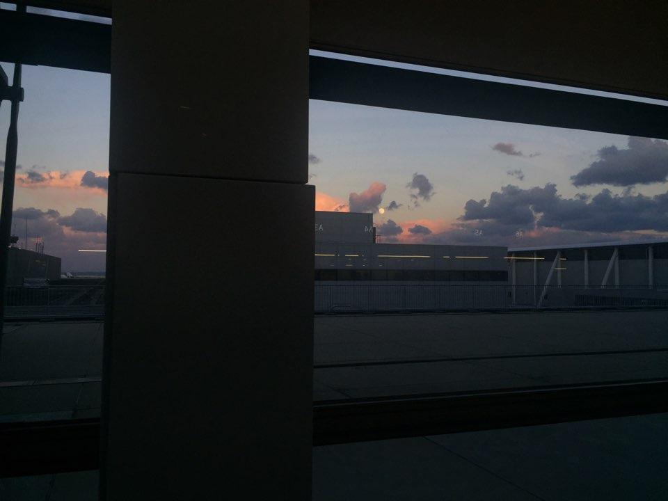 기나 긴 탑승 수속 가운데 달이 떴다어느새 집에 돌아가는 날이 되어버렸다.