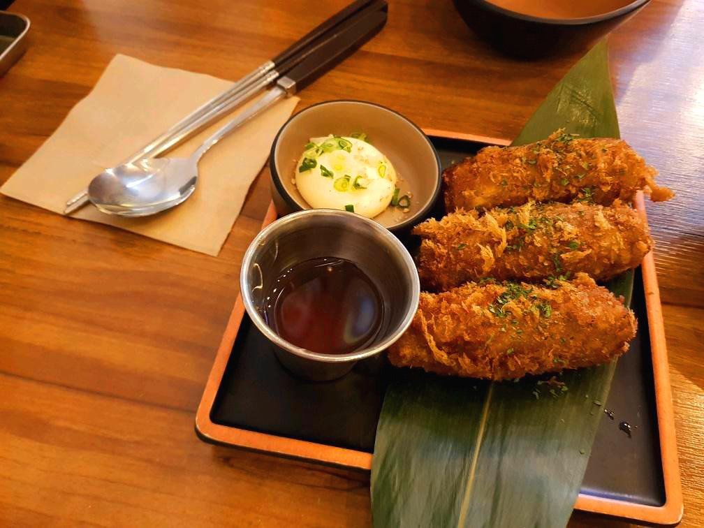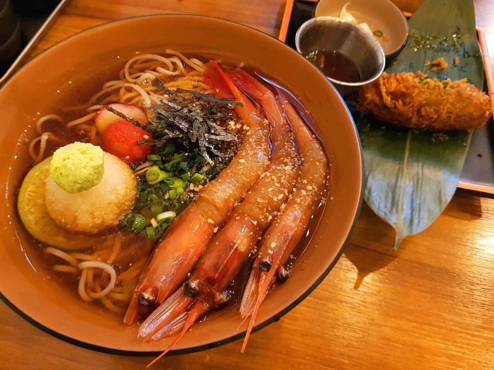 고추 튀김이 먼저 나오고 허겁지겁 하나씩 먹어 치운다. 청량고추가 들어가 꽤 맵다. 하지만, 입안에서 고기의 푸짐함과 육즙이 섞여 맛있는 알싸함을 선사한다. 애피타이저를 하나씩 먹고 나니 아내가 시킨 성게알 냉모밀, 내가 시킨 새우장 냉모밀이 차례로 등장. 먼저, 한 숟가락 국물을 맛본다. 맛있다. 맛있게 달다.