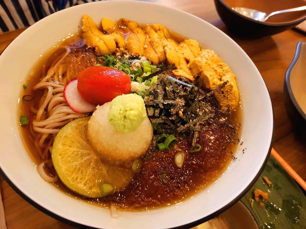 성게알은 순수 재료다 보니 평이한 맛. 새우장은 감칠맛 나는 단맛으로 메밀국수의 단맛과도 궁합이 좋았다. 특히, 절인 방울토마토는 단 한 알이지만, 적절한 산미가 배어 라임과 함께 엄청난 존재감을 보여주는 것이 아닌가? 이런 걸 바로 신의 한 수라 할만하다. 또, 반찬으로 나온 타카나(일본식 갓 절임)도 들기름에 한번 볶은 듯했는데 개인적으로 아주 좋아하는 스타일의 가니쉬였다.