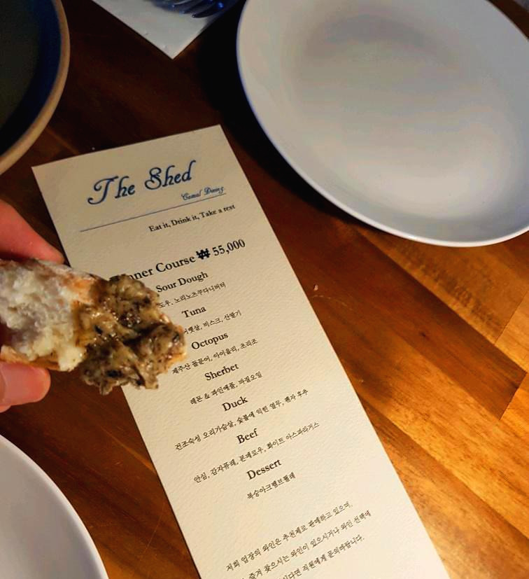 그러나, 이곳의 가격은 55,000원. 다이닝이라는 이름을 붙이기에는 저렴하다. 그럼에도 불구하고 평점도 좋았다. 사실, 첫날 호텔에서 걸어서 갈 수 있는 곳이라는 점이 선택의 중요 요소였다. 어쨌든, 첫날은 으레 제주에 왔으니 하며 떠오르는 메뉴를 피할 요량을 더해 선택했던 곳. 레스토랑의 이름은 '더 쉐드'.