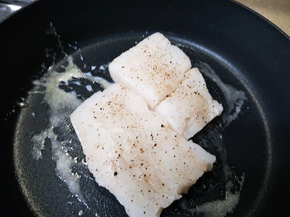 2. 냉동 대구는 해동을 한 후, 소금과 후추로 밑간을 해 둔다.