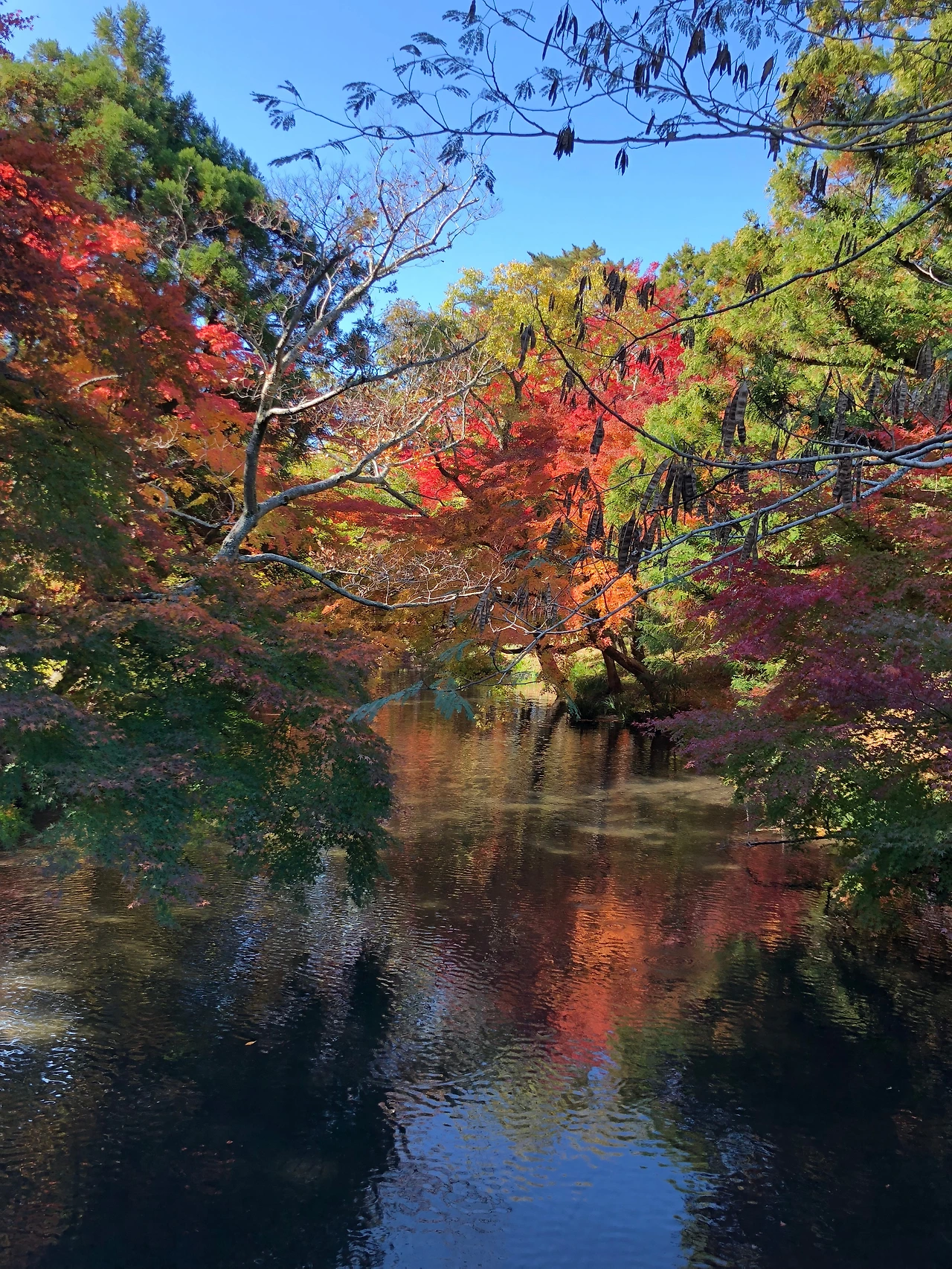 수채화로 그린 것처럼 알록달록한 풍경. 다리 위에서 찍은 사진 인데 여기서 사진찍으려고 기다리는 사람들 짱 많다. 나도 엄마 아빠 사진을 찍어주고... 쨍한 파란색 하늘과 빨강 주황 단풍들이 누가 와서 일부러 그리라고 해도 이렇게 이쁘게 못 그릴 거다!