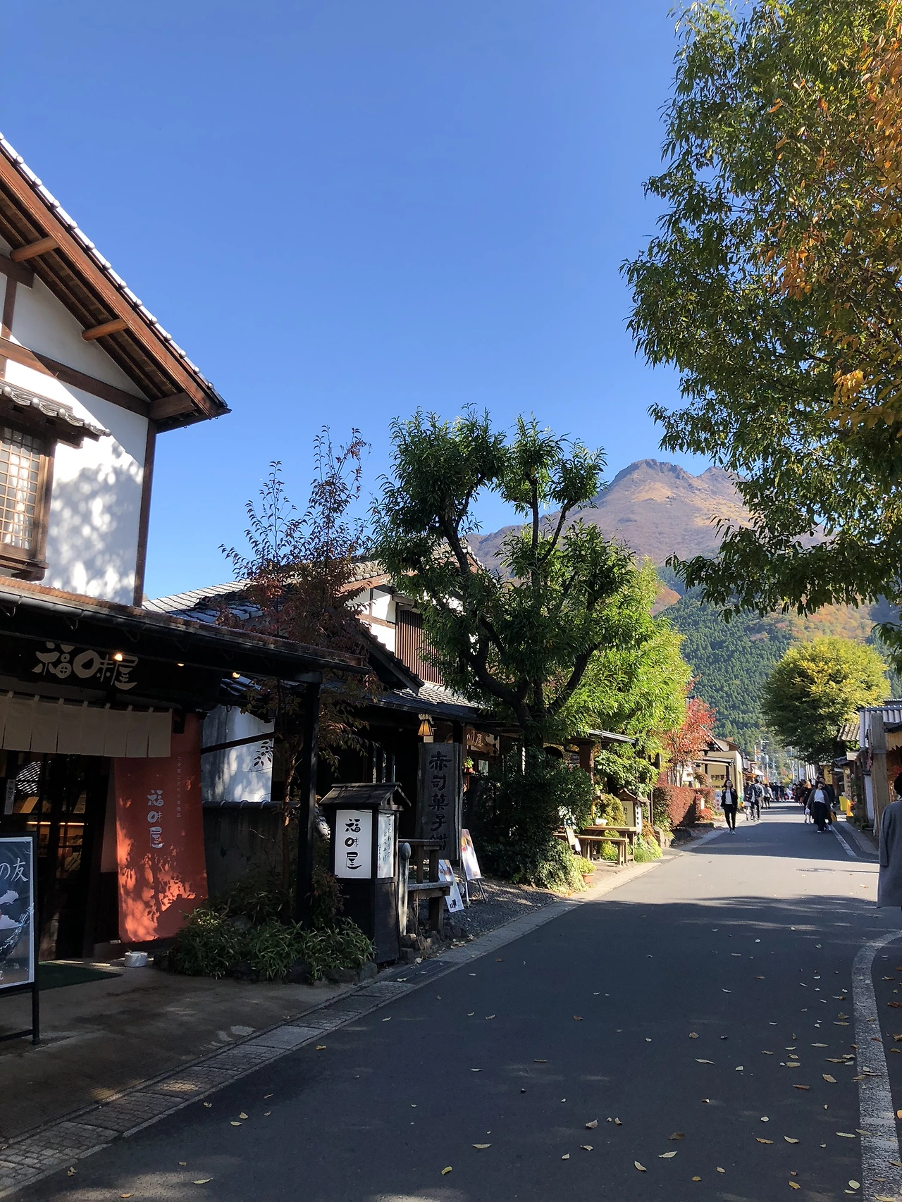 유후인에는 료칸이 많다. 교토나 도쿄 근교 온천마을에 비해 가격도 훨씬 저렴하다. 조식과 석식은 추가로 신청해야 한다. 역에서 걸어서 15분정도 떨어진 료칸으로 향했다. 새로 생긴 곳이라 가격대도 저렴하고 시설도 깔끔하여 엄마가 고른 곳이었다. 가는길 풍경이 고즈넉하고 예뻤다. 정갈한 가정식을 파는 작은 식당들도 많았다.