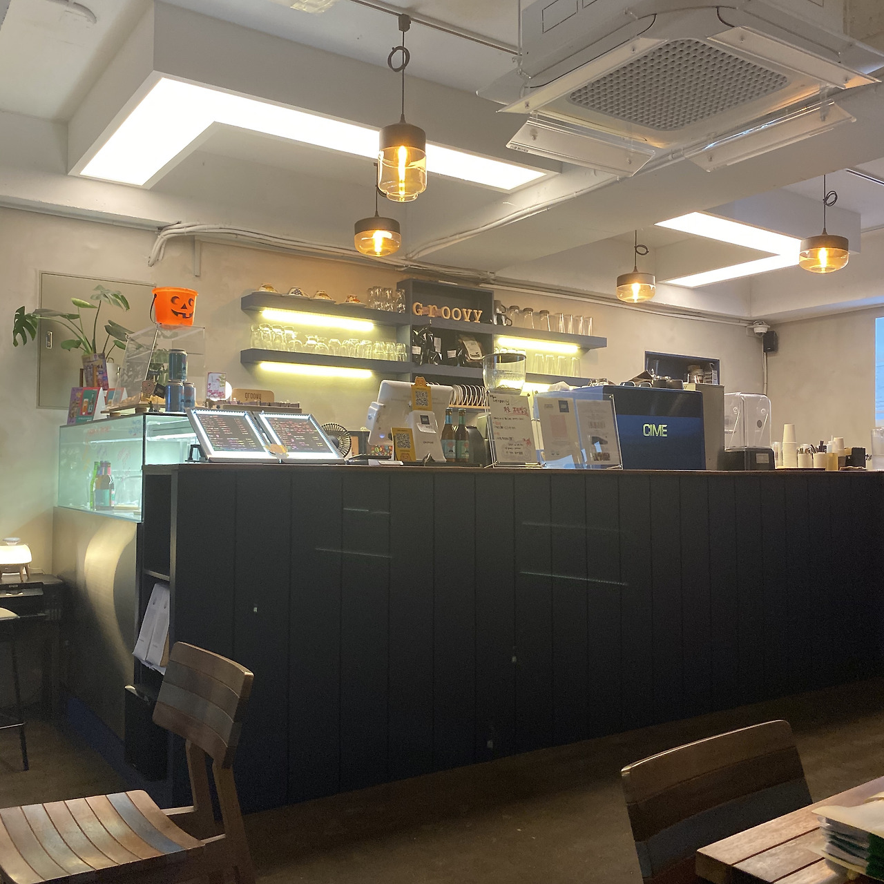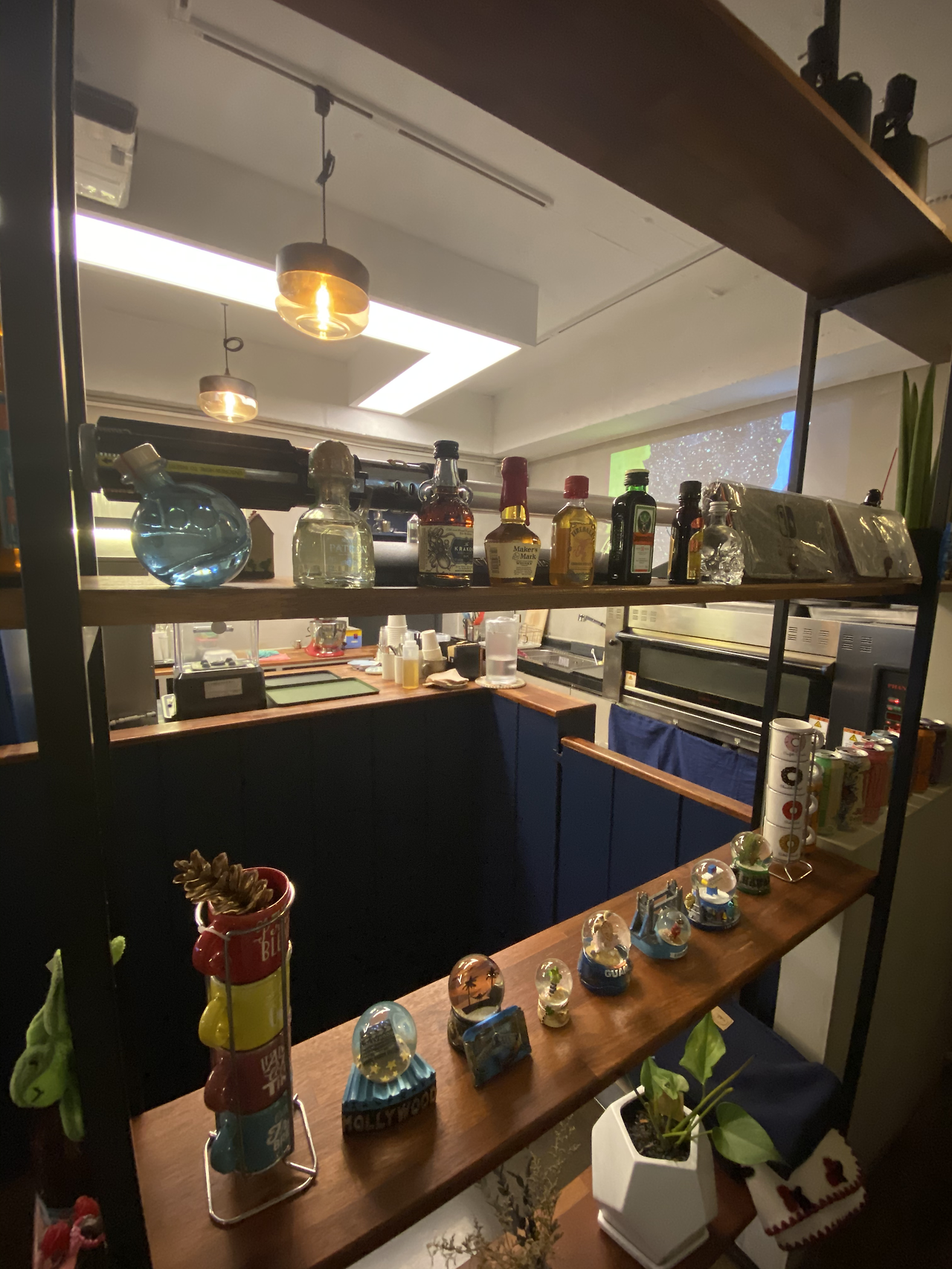 4. 나무 테이블, 노란 조명, 뭔지 모를 인테리어의 힘이 있다. 이 카페는 입구에 들어서면 긴- 테이블의 오픈형 키친이 있고, 나머지 공간은 아주 넓게 고객에게 제공되어 있다. 벽면에는 나오는 노래의 뮤비가 틀어지고 있고, 한 공간에는 아기자기한 기념품도 놓여 있다.