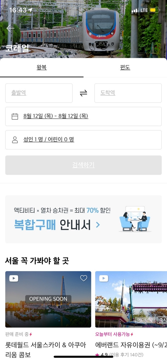 하지만 국내여행으로 눈을 돌리면서, '항공' 이외에도 다양한 이동 책이 생겨났다. 대표적으로 버스와 기차가 있다. 여행하고자 하는 도시가 공항과 멀거나, 자택이 공항에서 먼 경우 차선책인 기차를 이용할 수 있다. 하지만 현재 <트리플>에서는 기차 예약 서비스를 제공하고 있지 않기 때문에 어쩔 수 없이 KORAIL 혹은 네이버를 통해 기차를 예약하는 수밖에 없다.