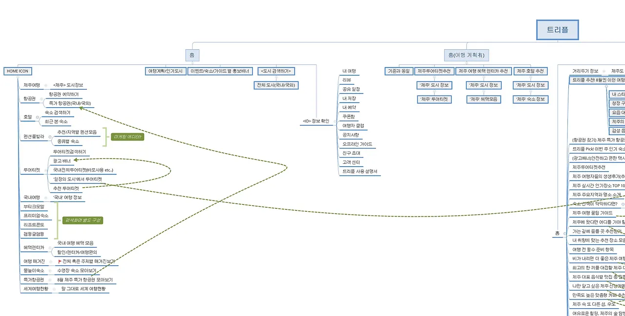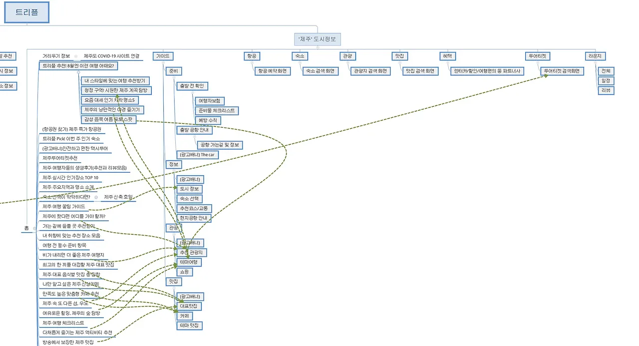 <트리플 서비스의 IA(Information Architecture)>, 크게 '홈' 탭과 '도시' 정보를 나누어 조사했다.