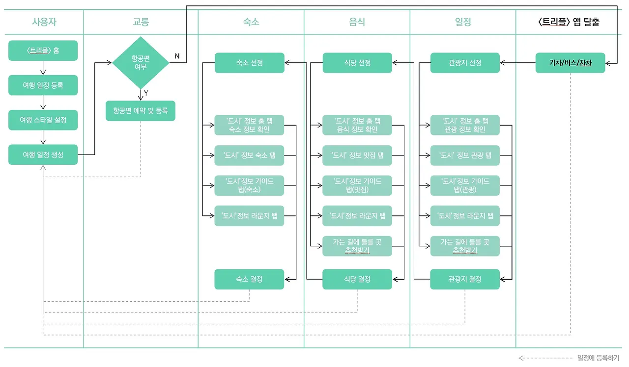 이처럼 일정 하나를 정하더라도 사용자는 정말 많은 정보를 확인할 수 있다. 이러한 사용자 프로세스를 간략하게 정리했다.