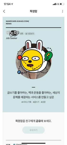 증빙입니다. 근데 이제 톡명함을 곁들인