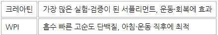 물 → 화장실 → WPI 1스쿱 + 크레아틴 5g