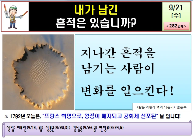그 흔적을 계승하고 발전하면 지식이 되는 것이고 적용하면 역사가 되는 것입니다.