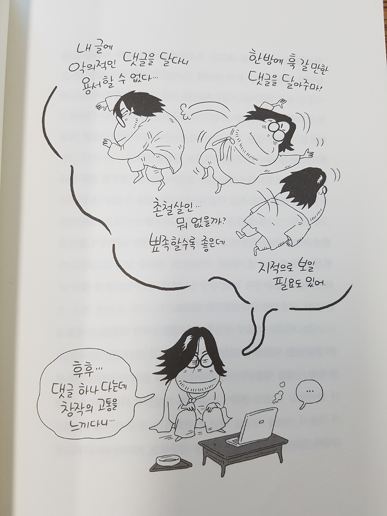 작가의 명성과 필력을 기존의 책에서 경험하였기에 만화가 글을 보좌하며 따라가겠지라고 생각했습니다. 하지만 만화와 글은 똑같은 주제의 방향은 갖고 있지만 개별성을 띤 단단한 골격으로 깊이 있게 자신만의 단어들로 표현하고 있습니다. 때로는 냉소적인 생각들을 만화가 주는 유머스러움으로 승화시켰고 글로써 자신을 비판했던 댓글들을 조목조목 재비판해 놓았습니다. 비판은 이렇게 하라는 선생님의 훈육처럼 들리기도 합니다. 가끔은 너무 자신감 넘치는 유시민 작가에게 오만과 편견을 느끼게 되기도 합니다. 설득과 공감의 논리보다는 반박과 훈육의 논리가 강하게 다가오기 때문입니다. 다름을 이야기하지만 그 다름이 당신은 잘못했어라는 지적으로 다가서기 때문입니다.