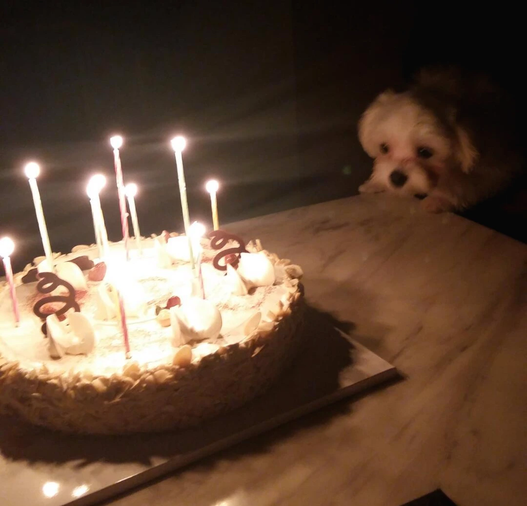ㅎㅎ... 우리 집 막내 여름이의 모습입니다. 태어나서 처음으로 생일 케이크를 보면서 뭐가 그렇게 신기한지 뚫어져라 바라보고 있습니다. 이제는 생일 축하해 줄 대상이 늘어난 것에 감사해야 할 듯합니다.