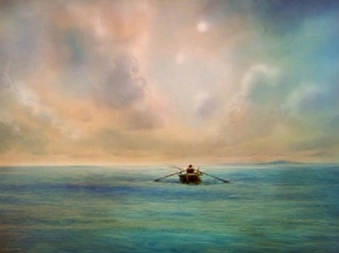 해질 무렵 석양 노을 돛단배 한 척이 유유히 흘러간다. 고요한 바다에서 배와 사람만이 새까만 그림자로만 비치며 마음 한편을 석양빛으로 물들이고 있다. 청새치와 늙은 어부의 사투 이전에 노인과 바다를 연상케 되는 이미지이다. 고향이 바다를 낀 어촌 이어서일까? 작은 돛단배 한 척에서 아버지의 형상이 그려지고 그리움이라는 아득한 단어가 연상된다. 노인도 어부이기 이전에 한 인간으로서 존재 가치를 증명하고 싶었을 것이다. 84일간의 어부로서의 역할을 잃어버린 상처가 절박한 간절함으로 그의 마음을 자극하고 있었다. 자신을 아버지처럼 스승처럼 따르는 소년과의 이별도 사람에 대한 그리움을 놓쳐버린 아픔이었다.