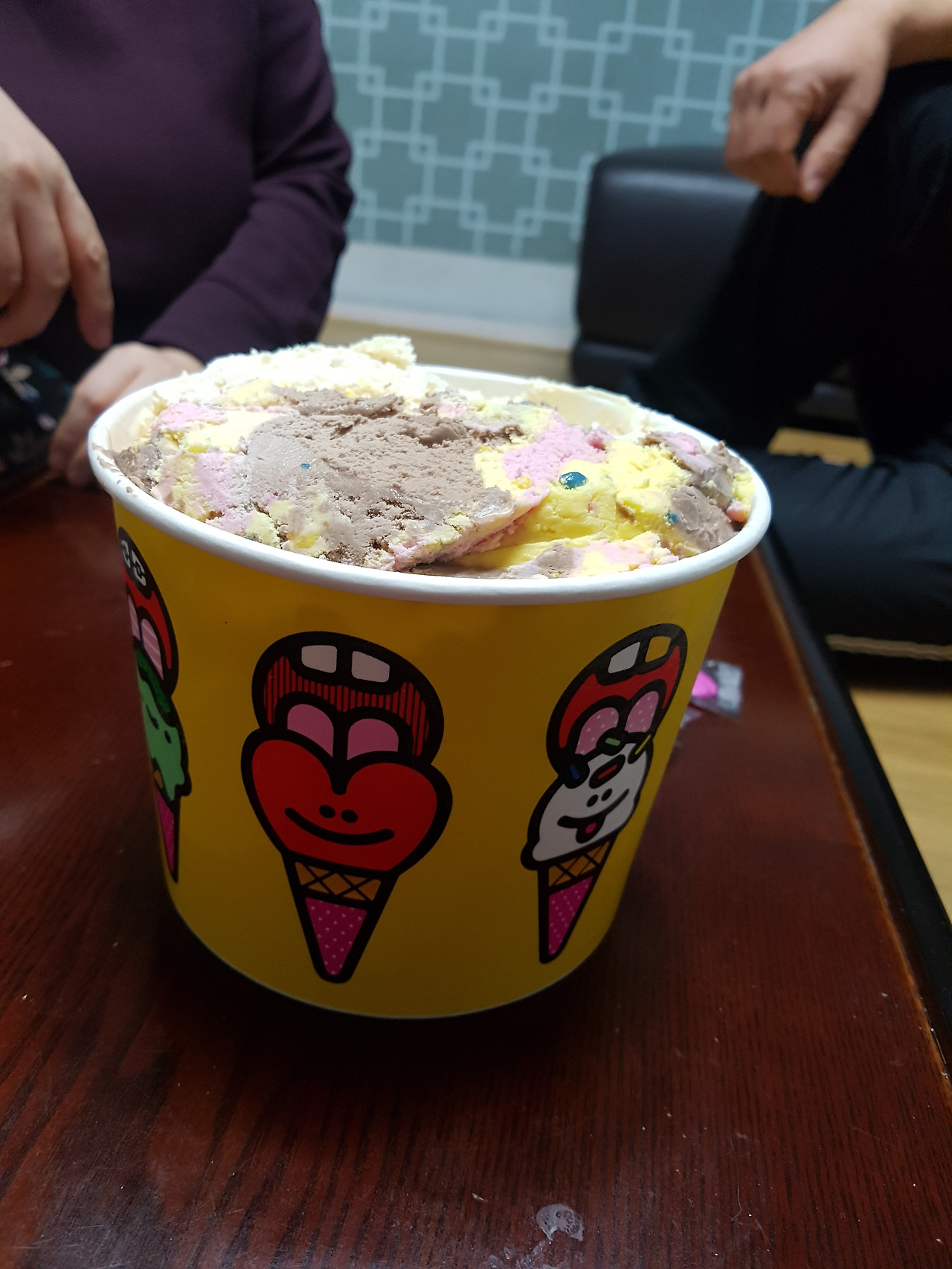 이런저런 이야기하는 사이에 아이스크림은 점점 줄어들고 있었다. 3분의 2 정도 먹고 나서 다시 분위기가 급변했다. 위에 보이던 3가지 맛 밖에 없다. 우리는 5가지 맛을 주문했는데 똑같은 맛은 없고 메뉴도 3가지뿐이라니... 이러면 안 되지...