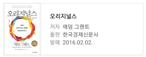 애덤 그랜트의 『오리지널스』는 부제로 "어떻게 순응하지 않는 사람들이 세상을 움직이는가"라는 도발적인 제목을 달았다. 평균적 생각에서 벗어나 개개인성, 즉 독창성에 대해 깊이 있게 생각해 보게 만드는 책이다.