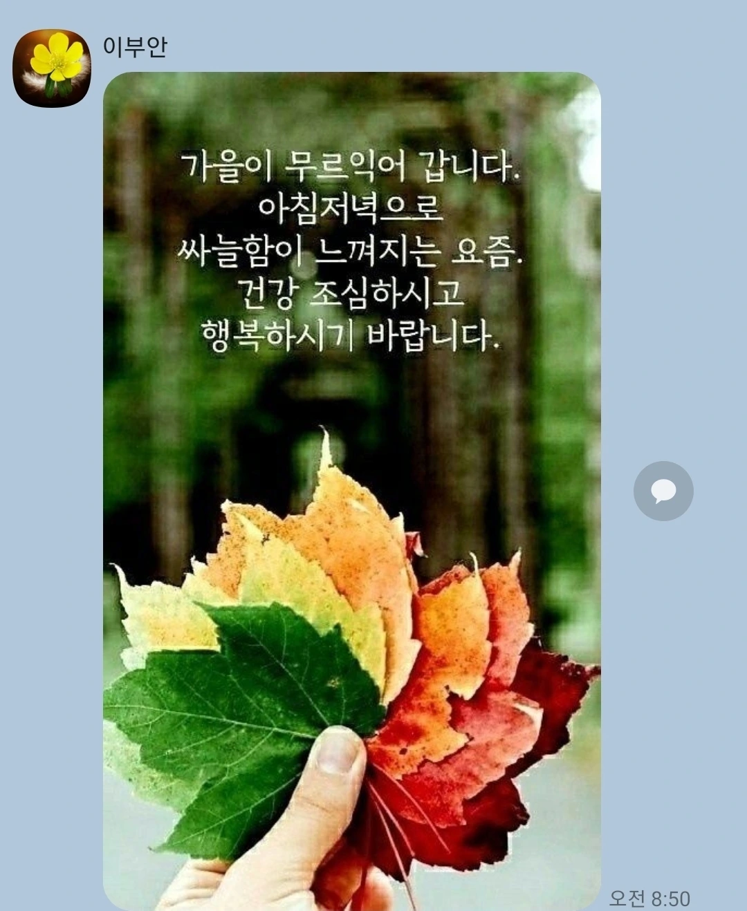 익어가는 게 가을만 있겠습니까. 관계도 익어가고 마음도 익어가고 사랑도 익어갑니다. 추워지니 따뜻한 온실이 그립듯 사람도 그리워집니다. 어제 모처럼 병원생활 함께한 동생을 만나 수다를 떨었더니 추위로 움츠렸던 마음에 온기가 스며들었습니다. 따뜻함은 이불속이 아니라 사람에게서 느껴야 합니다. 36.5도 끼리 함께하면 100도씨 이상의 열로 얼었던 마음을 녹입니다. 오늘도 사람의 온기로 따뜻하게 보내세요^^