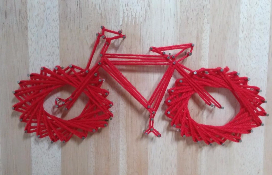 한 줄 한 줄의 실에서 한 땀 한 땀 애정이 담긴 손길이 느껴집니다. 그리고 두툼한 바퀴가 자전거라기보다는 오토바이에 더 가까울 듯합니다. 작은 못들이 틀을 잡고 있지만 빨간색 실의 조합과 어우러져 하나의 생명체로 다시 태어났습니다. 고1 들어 선, 딸의 복잡한 심리가 자전거 하나로 대변되지는 않겠지만 만들어간 그 과정에 애틋한 마음이 깃들게 됩니다. 못 들 사이사이를 하나의 실로 연결하기가 쉽지 않을 터, 실수를 반복하는 그 과정을 통해 외부와는 단절하고 내면의 자아를 찾기 위한 소리 없는 아우성이 들리는 듯합니다. 복잡한 내면의 소리를 잠재우는 방법 중 하나가 무언가에 몰입하는 것이라 생각됩니다.